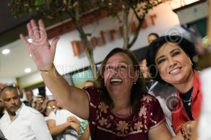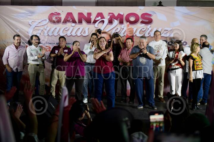 XALAPA, VERACRUZ, 02JUNIO2024.- La candidata a la gubernatura Rocío Nahle celebró su triunfo preliminar ante cientos de simpatizantes en la Plaza Lerdo. FOTO: YERANIA ROLÒN/CUARTOSCURO.COM