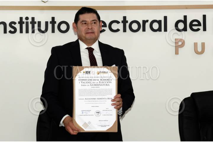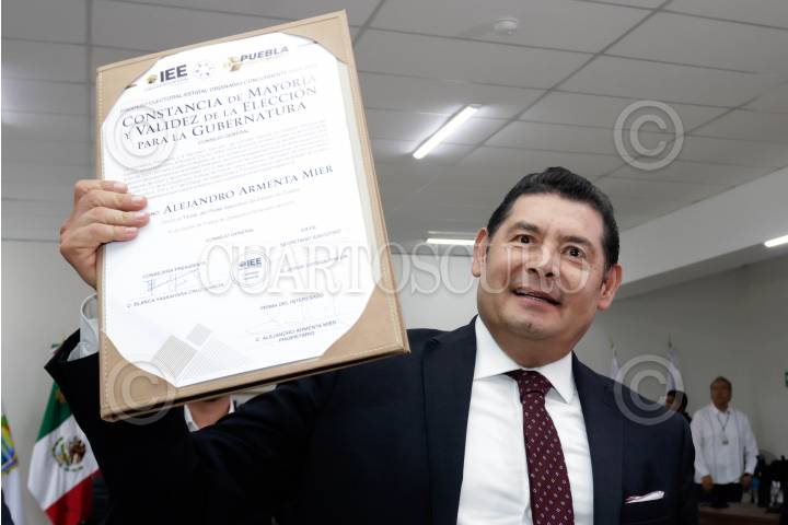 PUEBLA, PUEBLA, 09JUNIO2024.- Alejandro Armenta Mier recibió la Constancia de Mayoría y Validez de la Elección para la Gubernatura, en el Instituto Electoral del Estado de Puebla. FOTO: MIREYA NOVO/CUARTOSCURO.COM