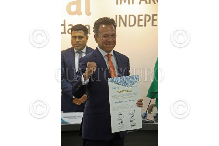 GUADALAJARA, JALISCO.- Pablo Lemus candidato a la Gubernatura del estado por el partido movimiento ciudadano, recibió la constancia de mayoría, lo que lo hace oficialmente el Gobernador del estado. FOTO: FERNANDO CARRANZA GARCIA / CUARTOSCURO.COM