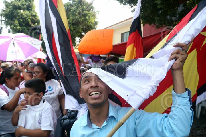 CUERNAVACA, MORELOS, 29ABRIL2018.-Un simpatizante de Cuauhtémoc Blanco Bravo, durante el arranque de campaña a la gubernatura del estado por la coalición “Juntos haremos historia” integrada por el Movimiento de Regeneración Nacional, Partido del Trabajo y Partido Encuentro Social, en la colonia Antonio Barona. FOTO: MARGARITO PÉREZ RETANA /CUARTOSCURO.COM