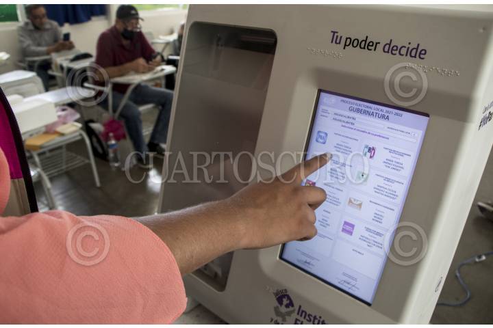 Ciudadanos participan en el proceso electoral 2021-2022, Junto a Tamaulipas, en Aguascalientes se implementa la modalidad de Voto Electrónico en 50 casillas electorales de los distritos 4, 6, 9, 14 y 15. Hasta el momento se percibe buena participación del millón treinta y cuatro mil del padrón electoral.