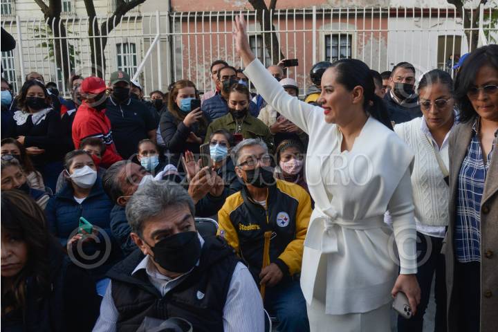 Sandra Cuevas, alcaldesa de Cuauhtémoc, en compañía de los alcaldes: Mauricio Tabe (Miguel Hidalgo); Lía Limón (Álvaro Obregón), y Margarita Zaldaña,(Azcapotzalco), ofreció un discurso para informar sobre su posicionamiento respecto al Deportivo Guelatao.