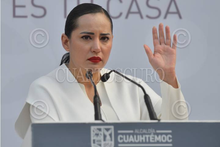 Sandra Cuevas, alcaldesa de Cuauhtémoc, ofreció un discurso para informar sobre su posicionamiento respecto al Deportivo Guelatao.