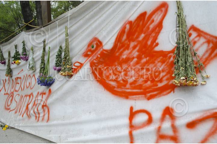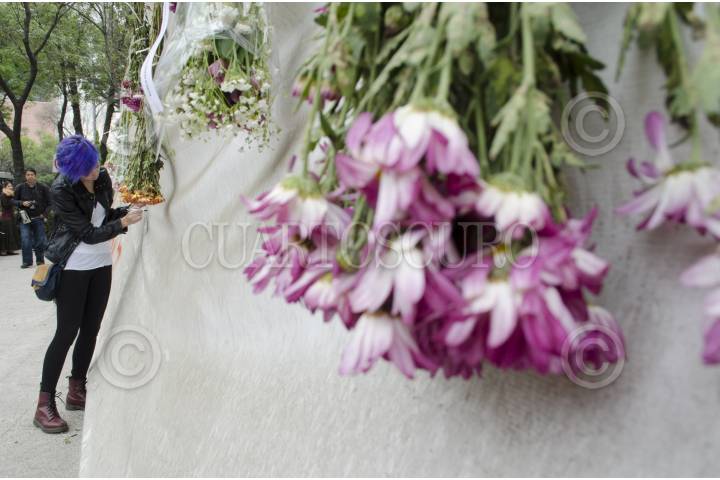 MÉXICO,D.F.,16FEBRERO2013.-Integrantes de la Asociación Creadores por la Paz en México y el arquitecto Julio Gaeta se manifestaron en el monumento ‘Memorial a las víctimas de la Violencia en México’, ubicado en Campo Marte; exigieron al Presidente Peña Nieto abra al público dicho monumento, ya que fue terminado desde noviembre pasado y no está cumpliendo su función de espacio recreativo ni de remembranza a los caídos por la denominada guerra contra el narcotráfico. FOTO: JOYCE GARCÍA /CUARTOSCURO.COM