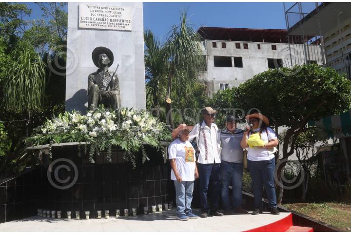 ATOYAC DE ALVAREZ, GUERRERO, 02DICIEMBRE2024.-Familiares de guerrilleros que participaron en el Movimiento Socialista Armado de México marcharon en este municipio para conmemorar la caída en combate de Lucio Cabañas el dos de diciembre de 1974 en la cañada del Otatal en el municipio de Tecpan de Galeana. La marcha fue encabezada por Micaela Cabañas Ayala, hija del maestro normalista, que después de la matanza del 18 de mayo de 1967 se remonto a la sierra cafetalera de este municipio para organizar el Partido de los Pobres y su Brigada Campesina de Ajusticiamiento que opero hasta su muerte. Los familiares de guerrilleros estuvieron acompañados por estudiantes de la Normal Rural de Ayotzinapa, familias de personas desaparecidas en la actualidad y lideres de organizaciones sociales de izquierda. La marcha concluyo con un mitin en el zócalo de la ciudad, a los pies del profesor Lucio Cabañas Barrientos. FOTO: MARGARITO PÉREZ RETANA/CUARTOSCURO.COM