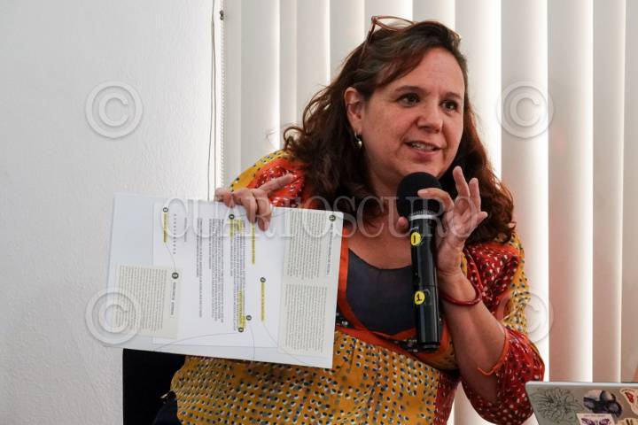 CIUDAD DE MÉXICO, 20AGOSTO2025.-La periodista Marcela Turatti durante la presentación de “La Lista Apresa y Los Vuelos de la Muerte” una investigación en conjunto de Quinto Elemento Lab y A dónde van los desaparecidos que arroja nuevos datos y nombres de personas que fueron detenidas entre 1972 y 1974 y que fueron víctimas de los conocidos como “Vuelos de la muerte”, estrategia del ejército mexicano utilizada para la desapareción de personas “incómodas” para el gobierno federal. FOTO: GALO CAÑAS/CUARTOSCURO.COM