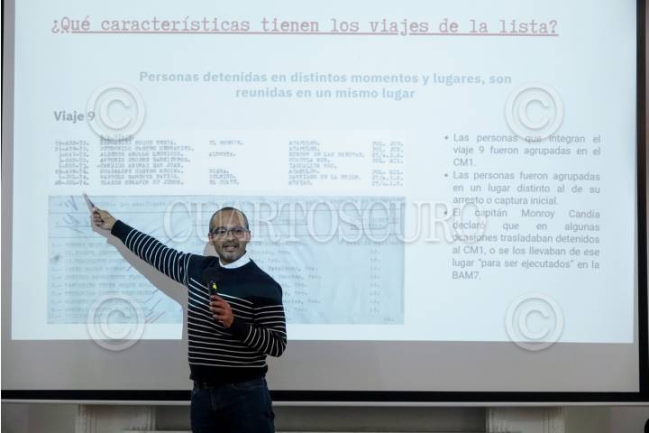 CIUDAD DE MÉXICO, 20AGOSTO2025.- El historiador Camilo Vicente Ovalle durante la presentación de “La Lista Apresa y Los Vuelos de la Muerte” una investigación en conjunto de Quinto Elemento Lab y A dónde van los desaparecidos que arroja nuevos datos y nombres de personas que fueron detenidas entre 1972 y 1974 y que fueron víctimas de los conocidos como “Vuelos de la muerte”, estrategia del ejército mexicano utilizada para desaparecidos a personas “incómodas” para el gobierno federal. FOTO: GALO CAÑAS/CUARTOSCURO.COM