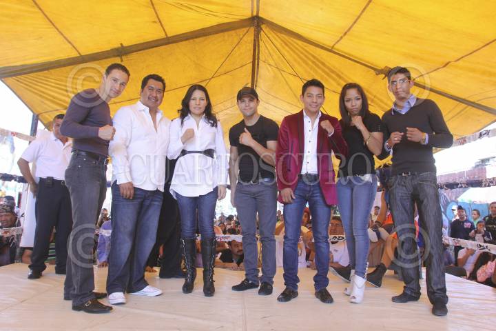 NEZAHUALCÓYOTL, ESTADO DE MÉXICO, 31ENERO2013.- Con bombo y platillo, Ana María Torres, la “Guerrera”, organizó un gran evento al lado de su esposo Cristóbal y su hijo recién nacido y al que asistieron personalidades de la talla de José Sulaimán, presidente del Consejo Mundial de Boxeo, Gamaliel “Plátano” Díaz, campeón súper pluma del CMB, Cristian Mijares, Johnny González, entro otros. “Me siento muy contenta, muy feliz porque empiezo una etapa como empresaria, también estamos viendo la posibilidad de incursionar como promotores, o si no, mi suegro tiene ganas de poner otro gimnasio, pero en el DF, igual para los jóvenes, pero sería más amplio y así seguir apoyándolos”, mencionó la entusiasta boxeadora. Para cerrar con broche de oro la inauguración, se llevaron a cabo 15 peleas de exhibición y a partir de ahora, los interesados en el boxeo pueden acudir a entrenar al gimnasio ubicado en la calle Cadena #328, en la colonia Modelo. FOTO: SAÚL LÓPEZ /CUARTOSCURO.COM