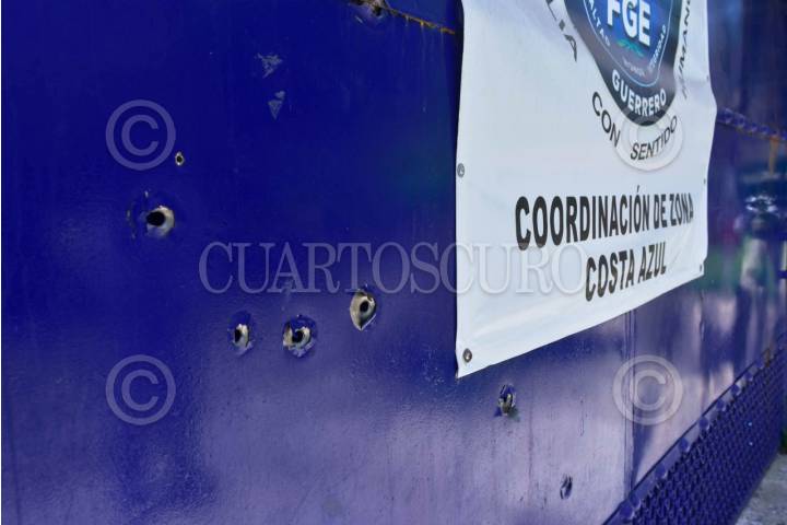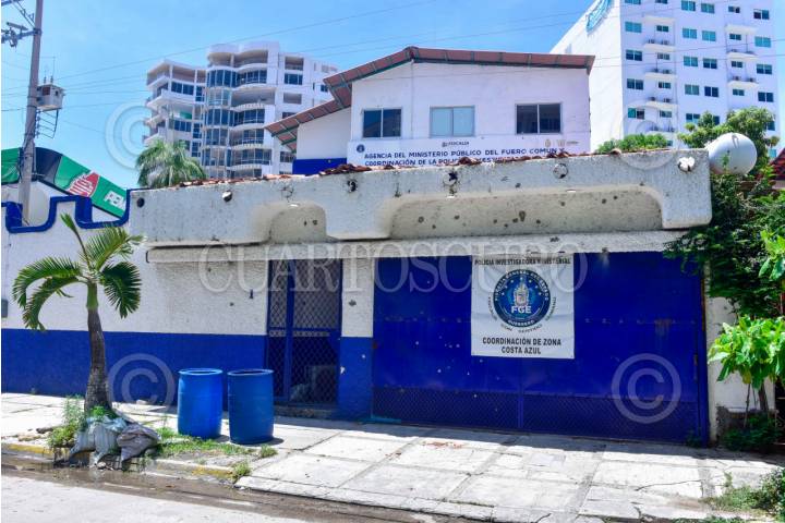 ACAPULCO, GUERRERO, 28JULIO2025.- Las instalaciones de la Coordinación Zona Costa Azul de la Fiscalía Regional del Estado de Guerrero fueron atacadas a balazos la noche del domingo por un grupo de hombres armados, quienes realizaron más de 60 disparos contra la fachada del inmueble. Este lunes, las instalaciones permanecieron cerradas y no se observó presencia de vigilancia especial. FOTO: CARLOS ALBERTO CARBAJAL / CUARTOSCURO.COM