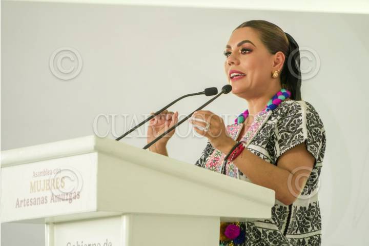 XOCHISTLAHUACA, GUERRERO, 24AGOSTO2025.- Evelyn Salgado, gobernadora de Guerrero, durante laasamblea con mujeres artesanas de Xochistlahuaca. fortalecerla. FOTO: PRESIDENCIA/CUARTOSCURO.COM