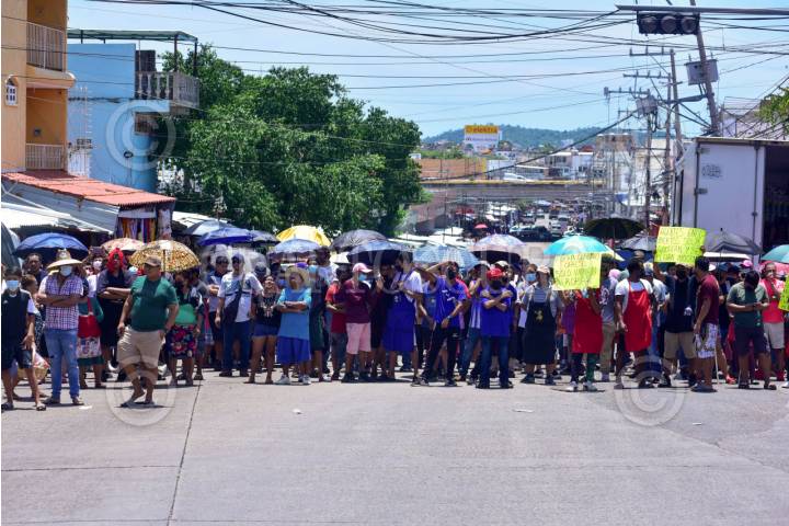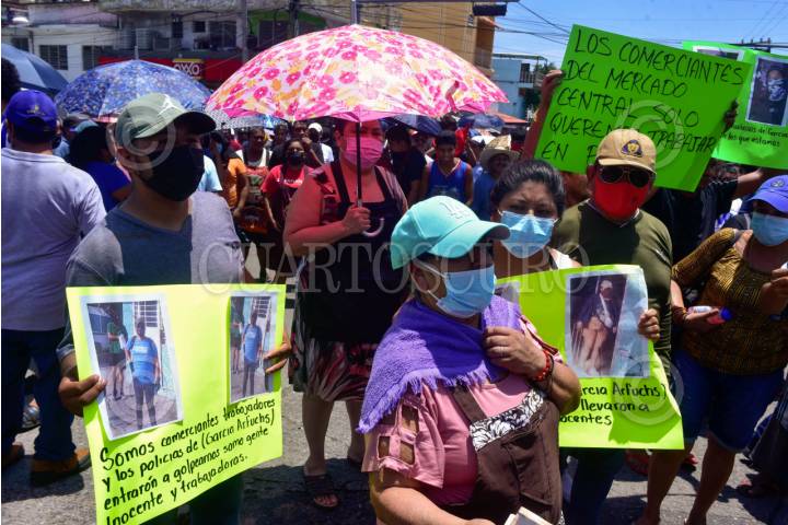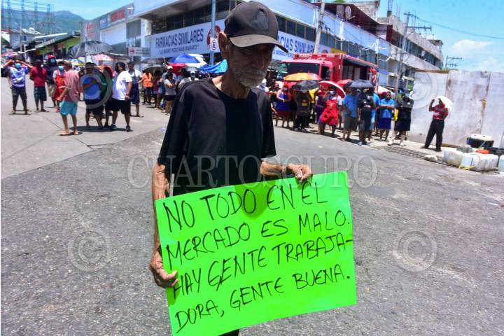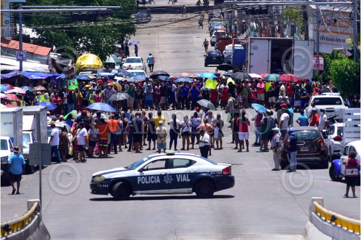 ACAPULCO, GUERRERO, 30AGOSTO2025.- Por segundo día consecutivo comerciantes del Mercado Central de Acapulco, realizaron un bloqueo a las avenidas Cuauhtémoc y Constituyentes en el Centro de Acapulco, queso para exigir la liberación de siete personas que fueron detenidas el día de ayer durante el operativo qué encabezaron agentes de la Secretaría Federal de Seguridad, con agentes de la marina y de la fiscalía del estado, los comerciantes denunciaron abuso de autoridad y del robo de celulares y de dinero durante el operativo gracias, qué fueron sustraídos por los elementos de seguridad de locales comerciales, también alegaron que los detenidos son personas inocentes que se dedican al trabajar en el mercado. FOTO: CARLOS ALBERTO CARBAJAL/CUARTOSCURO.COM
