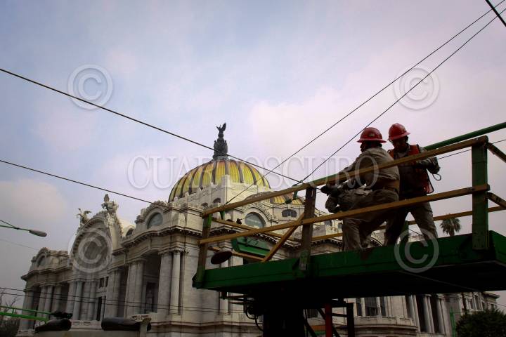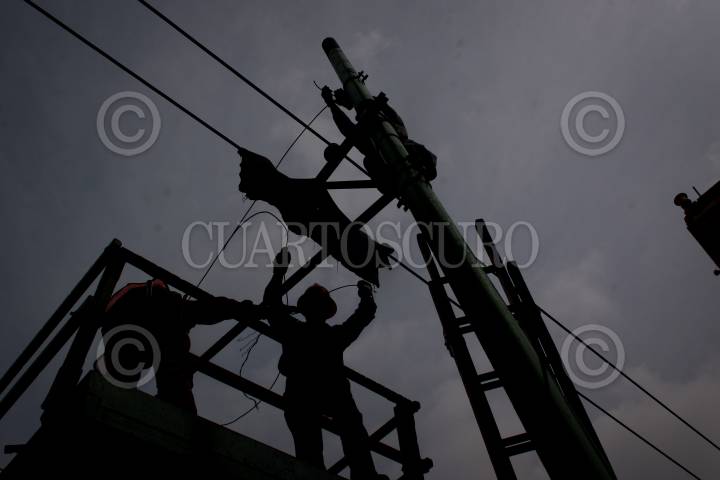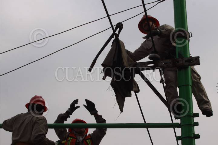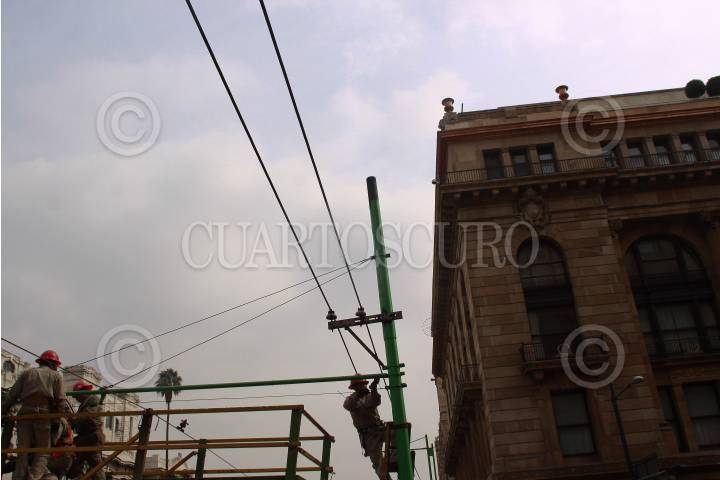 MÉXICO D.F., 17JULIO2009.- Personal de servicios públicos da mantenimiento a las guías eléctricas que forman parte del buen funcionamiento del trolebús. FOTO: SÁSHENKA GUTIERREZ/CUARTOSCURO.COM