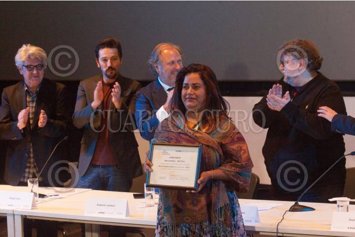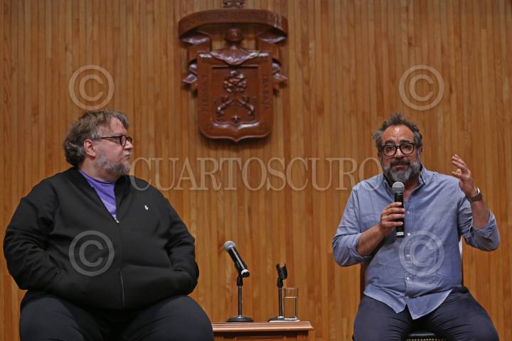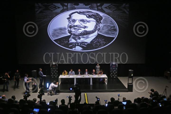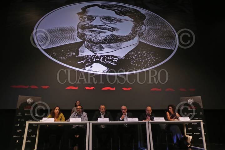 GUADALAJARA, JALISCO, 10MARZO2019.- El director del cine y ganador de El Óscar, Guillermo del Toro, entregó becas a jóvenes cineastas, el estímulo se denomina Beca Internacionak Jenkins-Del Toro, y los entregó en el marco del Festival Internacional de Cine de Guadalajara. FOTO: FERNANDO CARRANZA /CUARTOSCURO.COM