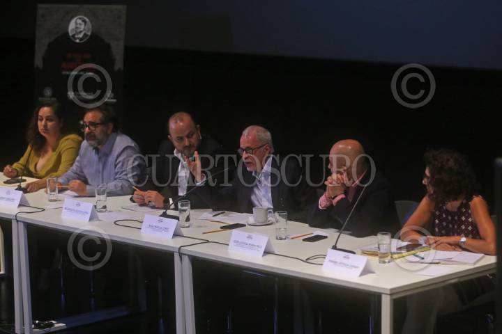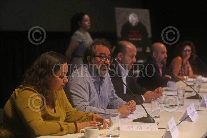 ZAPOPAN, JALISCO, 03MAYO2019.- Ricardo Villanueva Lomelí Rector de la Universidad de Guadalajara, Raúl Padilla López Presidente de la Fundación Universidad de Guadalajara, Eugenio Caballero Curador de la Exposición y Estrella Araiza Briseño Directora del Festival Internacional de Cine en Guadalajara, encabezaron una conferencia de prensa en el Centro de Artes Escénicas de la U. de G., para dar a conocer los pormenores de la exposición del cineasta Guillermo del Toro “En Casa con mis Monstruos”, que será inaugurada el próximo 31 de Mayo en las instalaciones del Museo de las Artes de la U. de G. FOTO: FERNANDO CARRANZA GARCIA / CUARTOSCURO.COM
