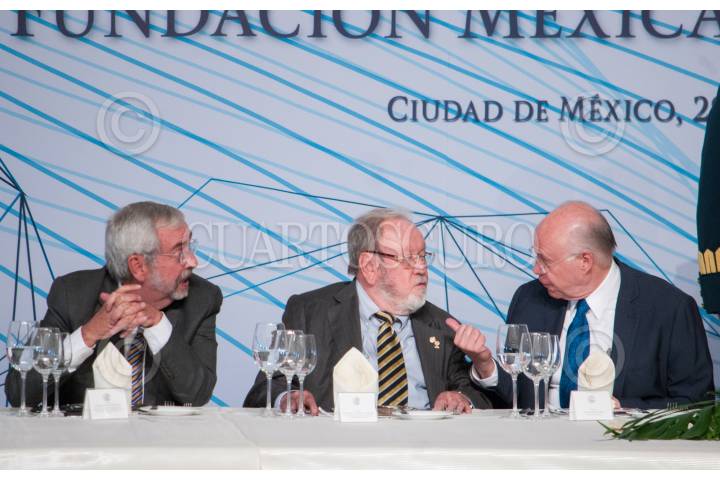 CIUDAD DE MÉXICO, 29MARZO2016.- Enrique Graue, rector de la Universidad Nacional Autónoma de México (UNAM); el doctor Guillermo Soberón Acevedo y José Narro Robles, secretario de salud, durante la XXXV Asamblea General Ordinaria de la Fundación Mexicana para la Salud en un hotel de Polanco. FOTO: DIEGO SIMÓN SÁNCHEZ /CUARTOSCURO.COM