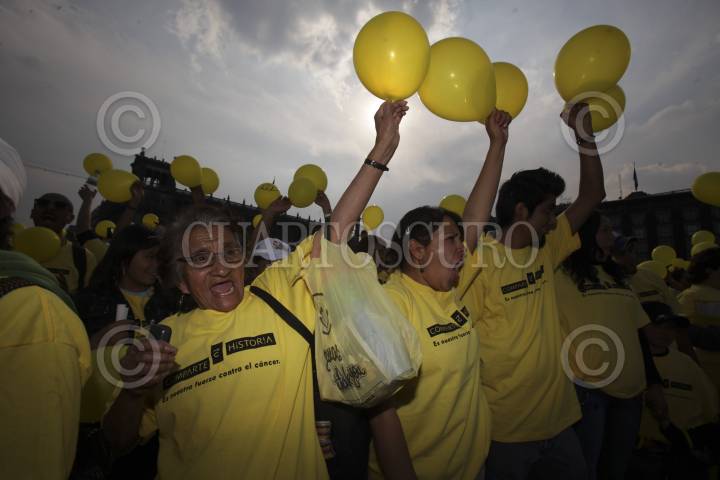 MÉXICO, D.F., 04FEBRERO2012.- La secretaría de Salud del Gobierno del D.F., la organización Live Strong, y otras organizaciones civiles conmemoraron el Día Mundial de la Lucha contra el Cancer. También realizaron el cinturón amarillo más grande del mundo, con el que se rompió el Record Guiness. FOTO: JUAN PABLO ZAMORA/CUARTOSCURO.COM