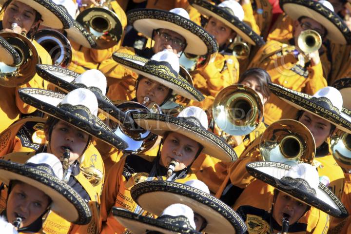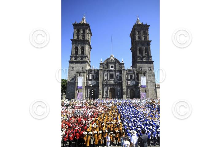 PUEBLA, PUEBLA, 14OCTUBRE2012.- Ante notario público 34 bandas y aproximadamente unos mil 500 músicos tocaron la melodía "Que Chula es Puebla" para intentar imponer Récord Guinness en el atrio de la catedral. Testimonios, fotografías videos y documentos serán enviadas para conocer el resultado en semanas próximas. FOTO: HILDA RÍOS /CUARTOSCURO.COM