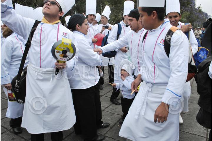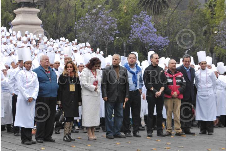 MÉXICO, D.F., 16MARZO2013.- En el Ángel de la Independencia se reunieron miles de chefs para intentar romper el "Récord Guinness de Chefs", durante esta actividad el fotógrafo Virro Borja realizó una toma aérea de la conglomeración de los chefs. Al evento asistieron Miguel Torruco, Secretario de Turismo DF; la diputada Elizabeth Vargas y el CEO de Editorial Agueda, Víctor Hugo Rodríguez. Al no batir el Récord, faltando 511 personas, los asistentes se contentaron con hacer un "Harlem Shakes" FOTO: JOYCE GARCÍA /CUARTOSCURO.COM
