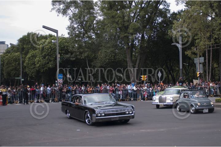 MÉXICO, D.F., 05OCTUBRE2014.- Con el objetivo de romper el Récord Guinness de una caravana de automóviles antiguos y clásicos, se llevó a cabo en Paseo de la Reforma el ‘Desfile de Autos Antiguos’. Autoridades capitalinas en coordinación con History Channel organizaron el evento con el objetivo de superar la meta de 948 vehículos que tiene Holanda. FOTO: IVÁN STEPHENS / CUARTOSCURO.COM