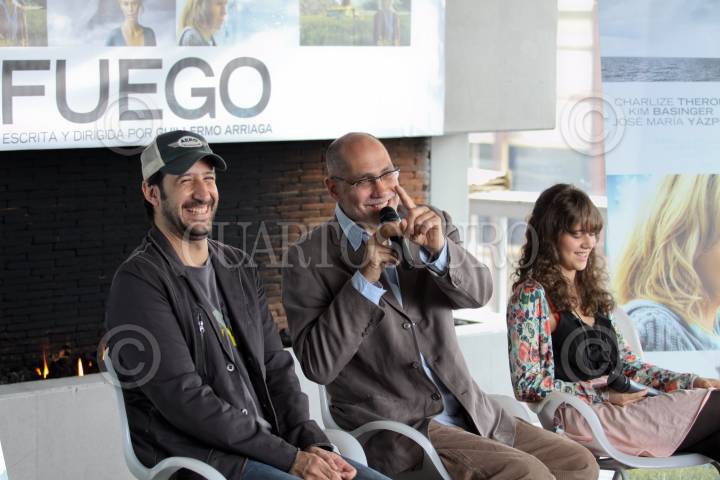 MÉXICO, D.F., 20JULIO2010.- José María Yazpik, Guillermo Arriaga, director mexicano y Tessa la, presentaran la película "Fuego", ópera prima del guionista de Amores Perros, Babel y 21 Gramos. Cinta que cuenta con la participación de las internacionales Charlize Theron y Kim Bassinger y locaciones en nuestro país y Estados Unidos. FOTO: MOISÉS PABLO/CUARTOSCURO.COM