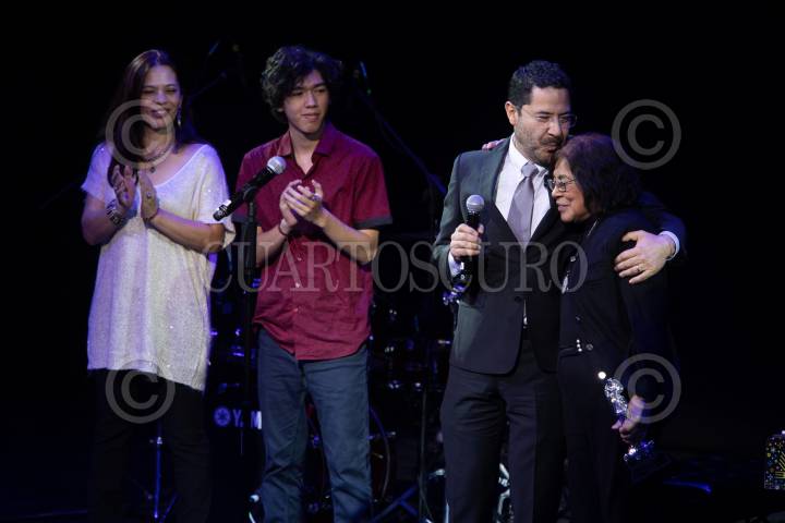 El Secretario de Gobierno de la Ciudad de México, Martí Batres entrego a la familia del guionista Xavier Robles la Diosa de plata como homenaje durante la ceremonia de premiación del XLVIII entrega de las Diosas de Plata por parte del PECIME, en el Cen