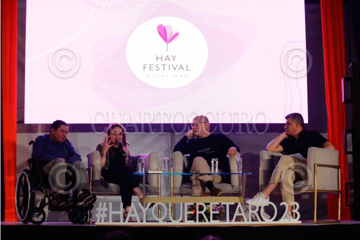 QUERÉTARO, QUERÉTARO, 08SEPTIEMBRE2023.- El guionista mexicano Guillermo Arriaga en conversación con Barbara Anderson, Enrique Covarrubias y Primitivo Olvera, durante el segundo día de actividades del Hay Festival Queretaro 2023. FOTO: CÉSAR GÓMEZ/CUARTOSCURO.COM