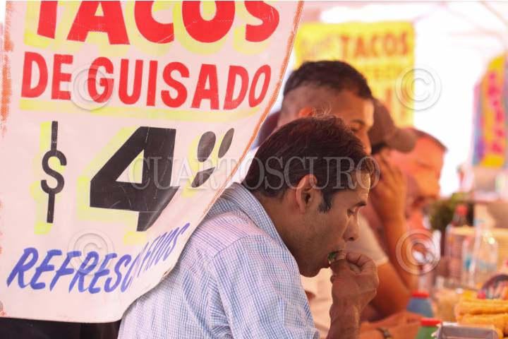 MÉXICO, D.F., 06MAYO2009.- Los puestos de comida ubicados en la calle, comenzaron sus actividades como todos los restaurantes ya que el día de ayer el gobierno local anunció que estos lugares podrían abrir siempre y cuando tomarán las medidas sanitarias adecuadas para evitar posibles contagios de la influenza humana. La imagen corresponde a un puesto de tacos de guisado ubicados en avenida Balderas casi esquina con avenida Juárez. FOTO: MOISÉS PABLO/CUARTOSCURO.COM