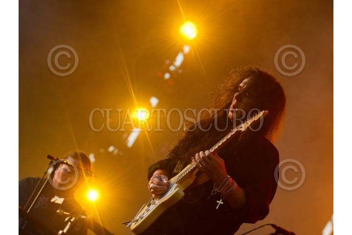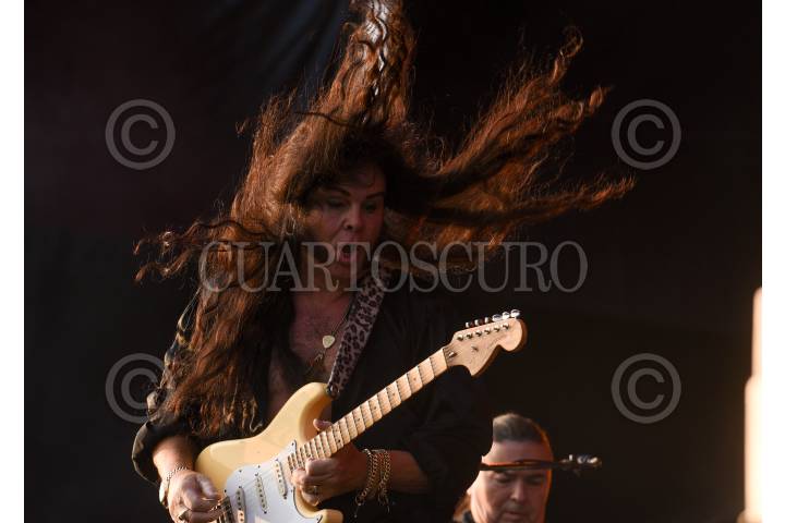 Paz Lenchantin guitarrista de la banda Pixies durante su presentación en el segundo día del Festival Iberoamericano de cultura Musical Vive Latino 2022 que se realiza en el Foro Sol.
