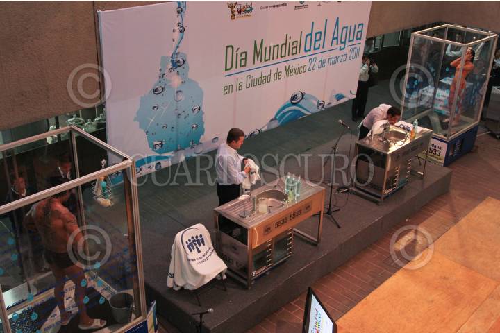 MÉXICO, D.F., 22MARZO2011.- Como parte del dia internacional del agua, en el evento se realizó una prueba de razurada para mostrar la cantidad de agua gastada en uno de los casos mientras que el otro lo hace de una manera que gasta menos. FOTO: ENRIQUE ORDÓÑEZ/CUARTOSCURO.COM
