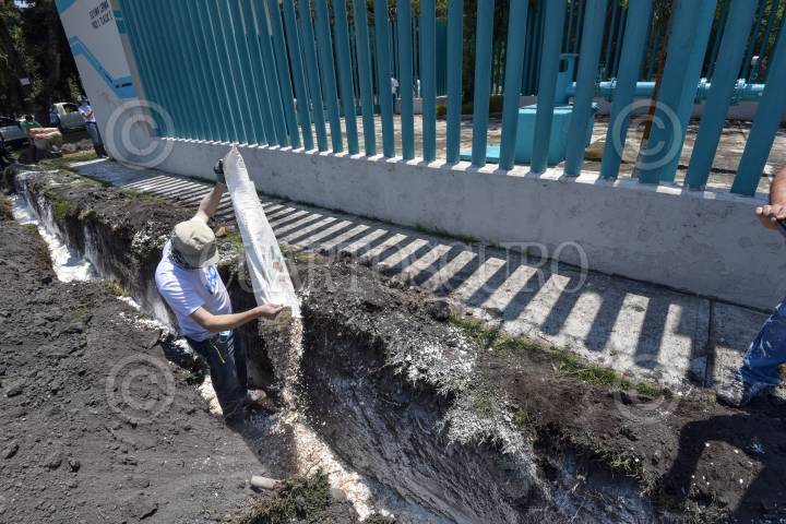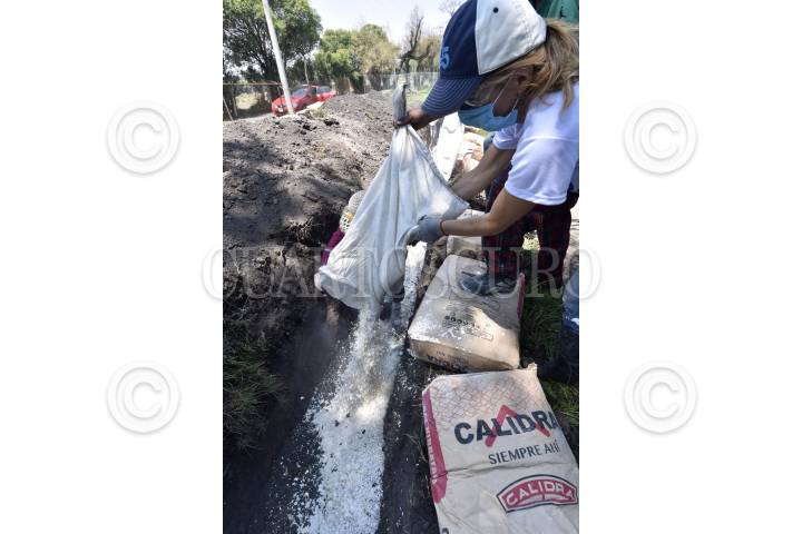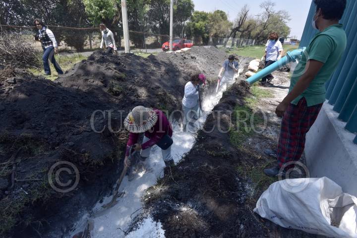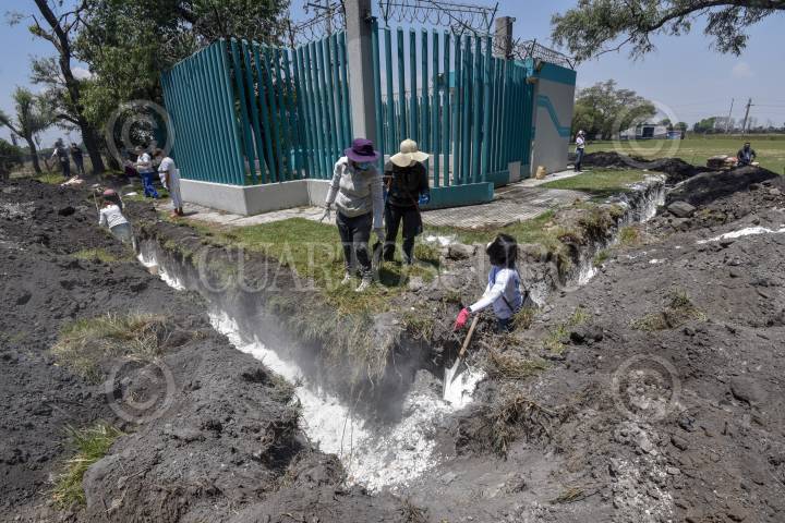 LERMA, ESTADO DE MÉXICO, 09MAYO2019.- Integrantes de la Asociación H2O Lerma con Encanto, estudiantes e investigadores de la UAEM trabajan en el saneamiento de pozos de agua en este municipio, colocando barreras alrededor de los pozos cascarones de huevo y cal, lo que permitirá que sean absorbidos el arsénico y metales pesados que se encuentran en el agua. FOTO: CRISANTA ESPINOSA AGUILAR /CUARTOSCURO.COM