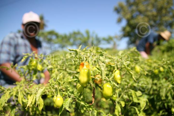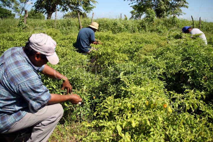 VILLAHERMOSA, TABASCO, 03OCTUBRE2009.- Productores ejidatarios de chile Habanero, que laboran desde las cinco de la mañana hasta las seis de la tarde, recolectando diariamente al menos cien kilos de este producto. De la misma manera revelan estos cosechadores que debido al "coyotaje" las ventas directas del campo al mercado no se da, y los que se benefician son los revendedores. FOTO: MARCO POLO GUZMÁN HERNÁNDEZ/CUARTOSCURO.COM