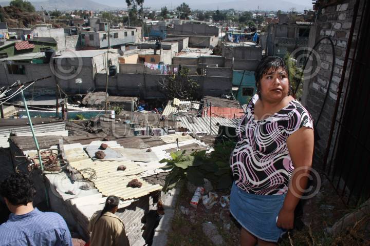 MÉXICO D.F., 23ENERO2010.- Sobre el cerro de El Peñón de donde se extrajeron miles de toneladas de Tezontle, se construyeron miles de unidades habitacionales de manera irregular es conocido como El Hoyo. Hoy por la mañana, (que por cierto hizo esperar a periodistas varias horas y sin explicación o disculpas) la delegada Clara Brugada realizó una gira y prometió a los vecinos resolver sus problemas y aumentar la vigilancia de la policía. FOTO: SÁSHENKA GUTIÉRREZ/CUARTOSCURO.COM
