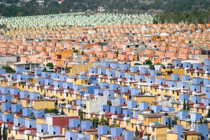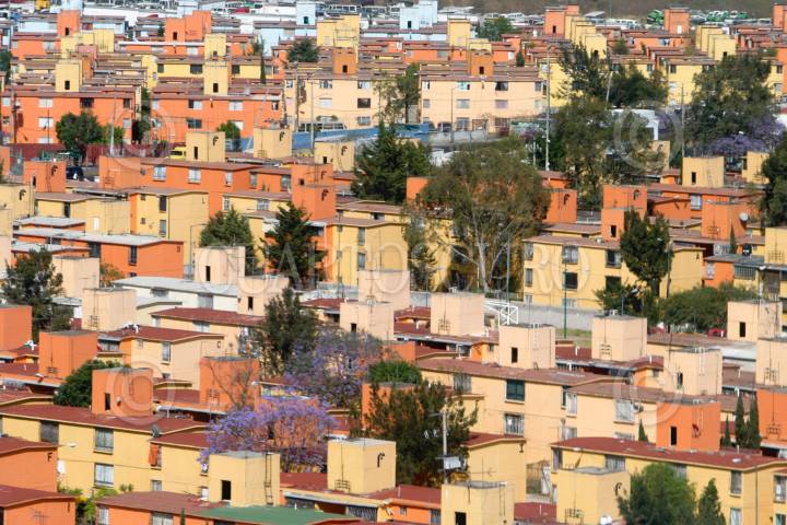 MÉXICO, D.F., 26MARZO2010.- En el sexenio pasado se vivió un crecimiento acelerado en la construcción de casas de interés social y los trámites para poder contar con un crédito de vivienda se volvieron más accesibles para la población que contaba con esa prestación laboral. En este gobierno se desaceleró este rubro y muchos de las nuevos conjuntos se construyen en la zona connurbada provocando el crecimiento de esta ciudad a los lados y no hacia arriba como lo que urbanistas habían recomendado en su momento, además de que al estar alejados de lo que es el cuerpo de la mancha urbana el contar con el servició de agua potable es más difícil, una problemática cada vez más crítica en esta metrópolis. FOTO: MOISÉS PABLO/CUARTOSCURO.COM