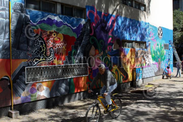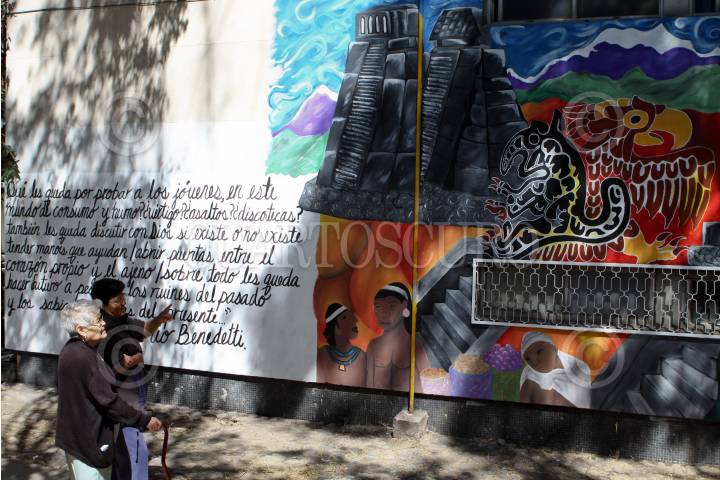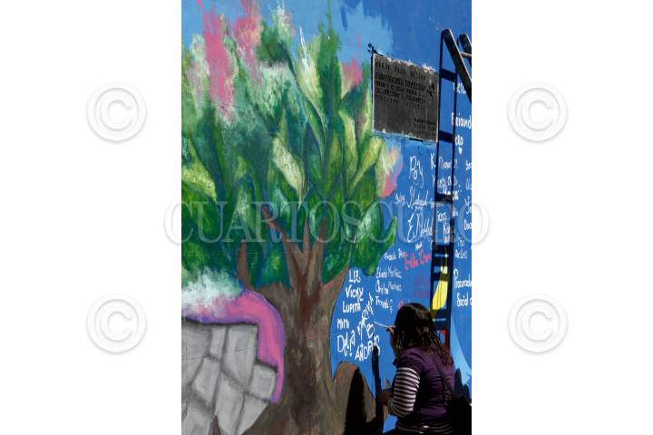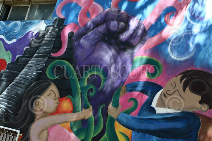 MÉXICO, D.F., 06NOVIEMBRE2010.- Un mural titulado “Construyendo Unidades Habitacionales” que se realizo en el edificio Narciso Mendoza de la unidad habitacional Tlatelolco fue inaugurado este día como parte del programa de recuperación de espacios. FOTO: RODOLFO ANGULO/CUARTOSCURO.COM