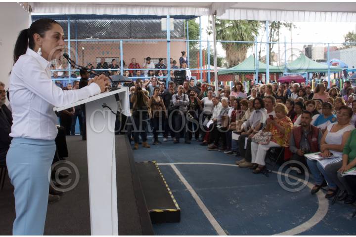 CIUDAD DE MÉXICO, 24SEPTIEMBRE2019.- Claudia Sheinbaum, Jefa de Gobierno de la Ciudad y Martha Patricia Ruiz, Procuradora Social de la Ciudad, encabezaron el evento “Rescate de Unidades Habitacionales”, en el cual se entregaron apoyos económicos para ara mejorar viviendas a vecinos de la Unidad Habitacional Eduardo Molina I. FOTO: ROGELIO MORALES /CUARTOSCURO.COM