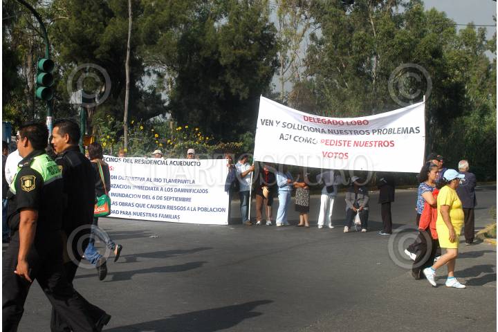 TLALNEPANTLA, ESTADO DE MÉXICO, 12OCTUBRE2009.- Vecinos de las colonias aledañas al Rió de los Remedios en bloquearon la Avenida Periférico Norte exigiendo a las autoridades el entubamiento de este rió al ser el causante de varios focos de infección entre los habitantes. FOTO: LUIS CARBAYO/CUARTOSCURO.COM