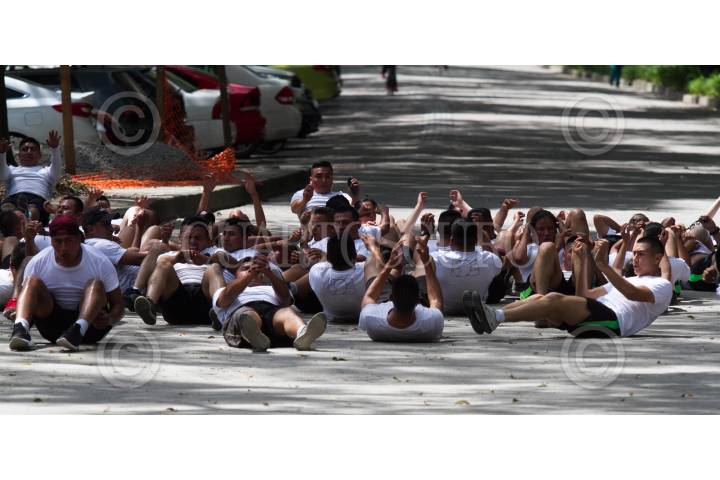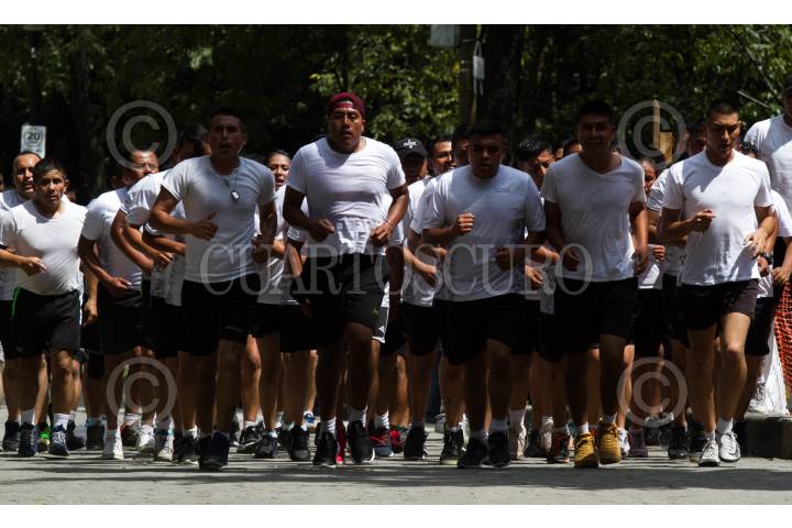 CIUDAD DE MÉXICO, 04OCTUBRE2018.- Soldados se ponen en forma en las inmediaciones del Bosque de Chapultepec, uno de los pulmones de la capital. FOTO: MOISÉS PABLO /CUARTOSCURO.COM