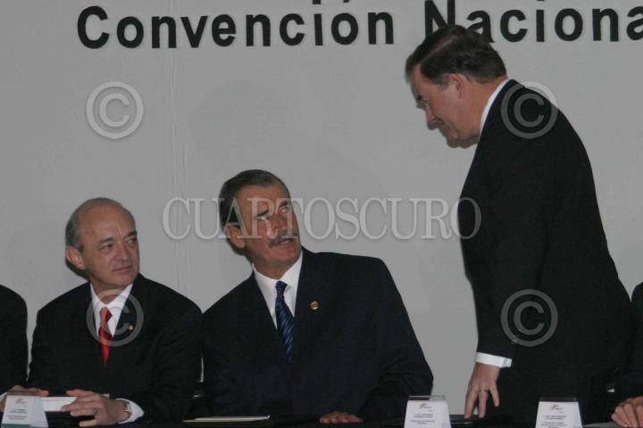 Juriquilla, Querétaro 05 Febrero 2004.- De pie Francisco Garrido Patrón, gobernador del estado de Querétaro da la bienvenida al presidente Vicente Fox y a Fernando Elizondo a su llegada a la inauguración de la Convención Nacional Hacendaria. FOTO: Nelly Salas/CUARTOSCURO.COM