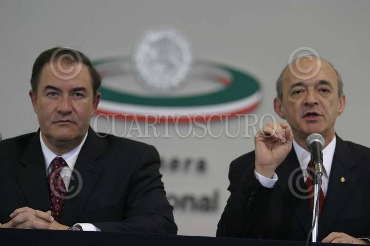 Juriquilla, Querétaro 05 Febrero 2004.- Francisco Garrido Patrón, gobernador de Querétaro y Fernando Elizondo representante del gobierno federal en la CNH ofrecieron una conferencia de prensa para informar de la agenda de la convencion hacendaria. FOTO: Nelly Salas/CUARTOSCURO.COM