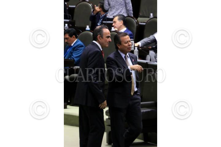 CIUDAD DE MÉXICO, 20OCTUBRE2016.- Jorge Estefan Chidiac y Cesar Camacho diputados del PRI, durante la sesión ordinaria en la Cámara de Diputados donde se discutieron los dictámenes de la miscelánea fiscal y la ley de ingresos de la federación. FOTO: SAÚL LÓPEZ /CUARTOSCURO.COM