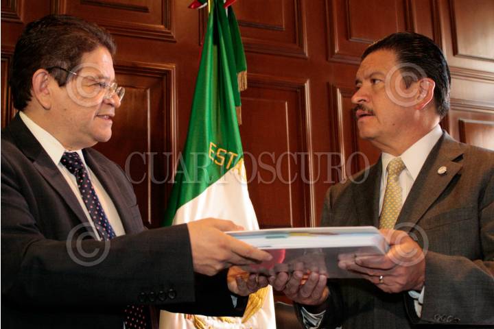 MÉXICO D.F., 28FEBRERO2010.- Francisco Javier Castellón Fonseca, Presidente de la Comisión de Ciencia y Tecnología entregó a Carlos Navarrete, Presidente del Senado de la República, propuestas que desde Twitter hicieron diferentes organizaciones ciudadanas, con el fin de que las haga llegar a las comisiones encargadas de dictaminar la reforma política. FOTO: CUARTOSCURO.COM