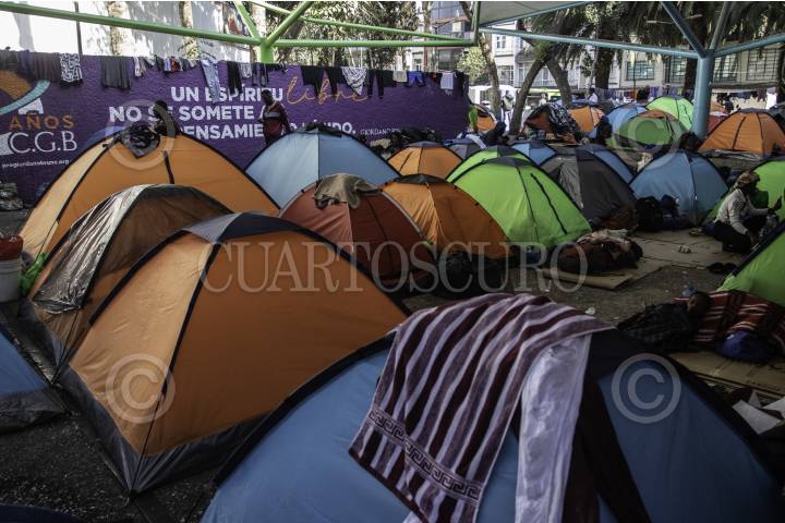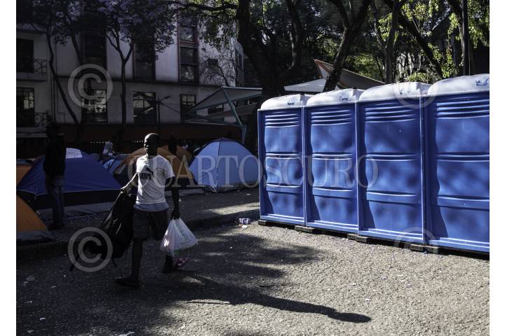 Decenas de migrantes en su mayoría haitianos diariamente realizan filas para tener cita en la Comisión Mexicana de Ayuda a Refugiados (CANAR) en la Colonia Juárez. A unas cuadras de la Comisión también mantienen un campamento que aunque se les haya dado asistencia con unos baños portátiles, el olor por la lluvia, basura es fuerte. En el lugar pernoctan hasta 100 personas diariamente.