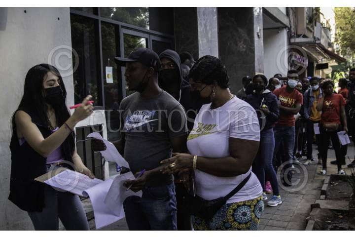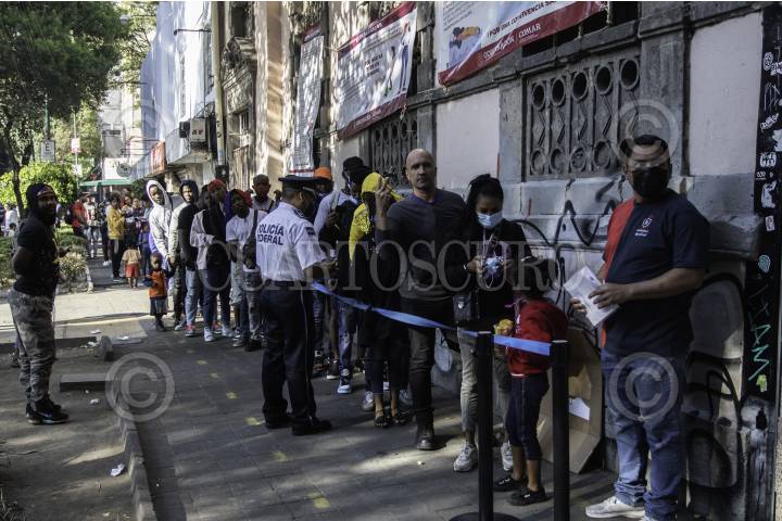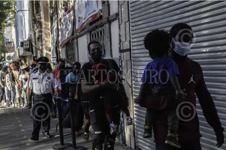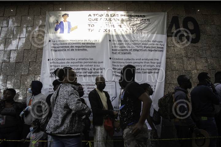 Decenas de migrantes en su mayoría haitianos diariamente realizan filas para tener cita en la Comisión Mexicana de Ayuda a Refugiados (CANAR) en la Colonia Juárez.