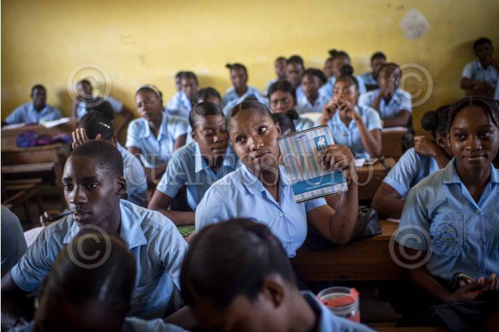 CABO HAITIANO, HAITÍ, 24ABRIL2024.- Las clases continúan con normalidad en la ciudad de Cabo Haitiano. Según el director de la escuela Liceo Nacional Dutty Boukman, Ronald Jules, los últimos meses han llegado decenas de nuevos estudiantes, provenientes de la capital del país, para continuar sus estudios de primaria, los cuales fueron suspendidos por la ola de violencia e inestabilidad que azota la capital. Fundada en 1670 por los colonos franceses, y situada en la costa norte de Haití, la ciudad de Cabo Haitiano, que otrora fue la capital colonial de la isla, es la segunda ciudad más importante de Haití. Los úlitmos meses, miles de haitianos provenientes de Puerto Príncipe han buscado refugio en ella huyendo de la violencia generada por los grupos armado, otros miles han huído del país. De enero a Marzo del presente año, más de 2500 personas han sido asesinadas o heridas fruto de la violencia y disputa de los márgenes urbanos entre dichos grupos y la policía nacional. La inestabilidad política y la violencia urbana que precedía la renuncia, en marzo del presente año, del ex primer ministro Arie Henry e, incluso, el asesinato en julio de 2021 del entonces presidente haitiano, Jovenel Moise, se han recrudecido en los últimos meses. Después de ser escenario de disparos e intentos de apropiación, el aeropuerto principal del país, el de Puerto Príncipe, permanece cerrado desde prinicpios de marzo, los grupos armados han ataco los prinicpales edificios gubernamentales, quemado estaciones de policía, y de las dos mayores prisiones de la capital han sido liberados más de 4,000 reos. Todo esto a la par que las calles de la capital y los caminos de acceso a ella son escenaros de disputa y enfrentamientos, comenzando ya a contarse las víctimas por balas perdidas. FOTO: PEDRO ANZA /CUARTOSCURO.COM