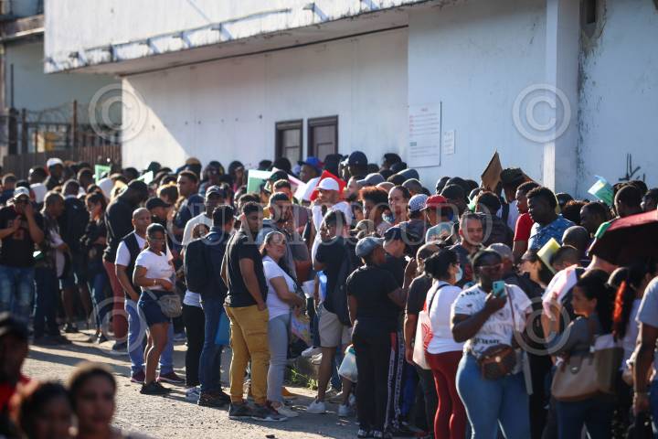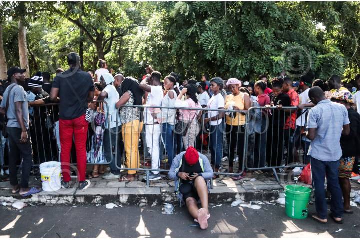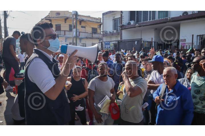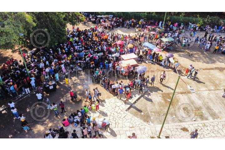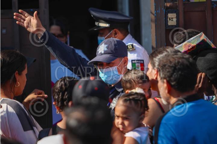 TAPACHULA, CHIAPAS, 20ENERO2025.- La oficina de la Comisión Mexicana Ayuda Refugiados (COMAR) colapso por migrantes, en su mayoría de Haití, quieres colmaron está sede buscando un documento que les permita continuar con su viaje hacia Estados Unidos. Un trabajador de la oficina salió hablar con un megáfono para avisar que por el momento no tiene citas de las entrevista y que deben de continuar con su cita semanal, esto ante la toma de protesta de Donald Trump como Presidente de Estados Unidos, quién ha dado a conocer que aplicará una política de deportaciones masivas a los migrantes irregulares de su país. FOTO: DAMIÁN SÁNCHEZ/CUARTOSCURO.COM