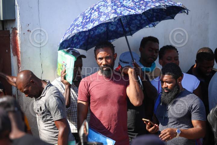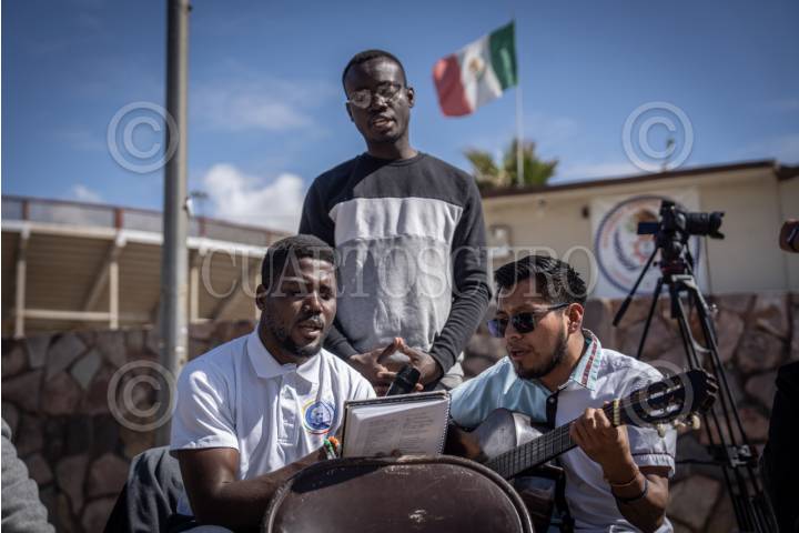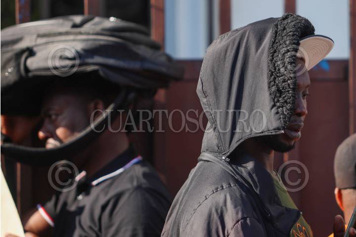 TAPACHULA, CHIAPAS. 25OCTUBRE2023.- Migrantes de Haití acuden a las oficinas de la Comisión Mexicana Ayuda a Refugiados ( COMAR ). Las primeras horas del día hoy miércoles los caminantes se formaron, Mientras los elementos de la Guardia Nacional resguardan las oficinas. FOTO: DAMIÁN SÁNCHEZ/CUARTOSCURO.COM