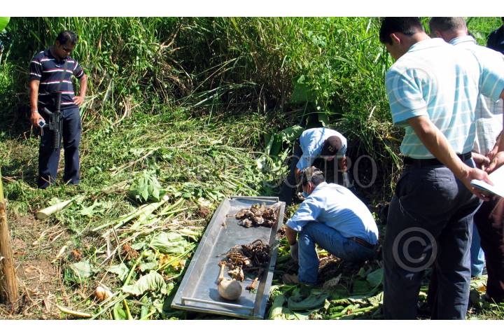 CENTRO, TABASCO, 16DICIEMBRE2007.- Una osamenta de restos humanos fue hallada sobre un predio de la ranchería Plátano y Cacao segunda sección, cuando un campesino realizaba la limpia de la parcela. FOTO: MARCO POLO GUZMÁN HERNÁNDEZ/CUARTOSCURO.COM