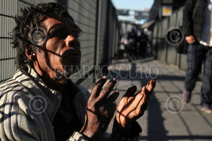 CIUDAD DE MÉXICO, 17FEBRERO2016.- Un hombre en situación de calle en las inmediaciones del aeropuerto internacional toma un descanso. FOTO: ISABEL MATEOS /CUARTOSCURO.COM