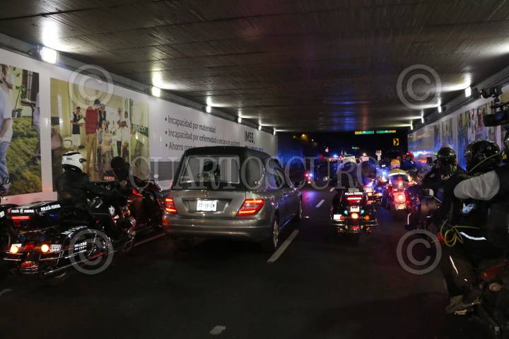 CIUDAD DE MÉXICO, 06SEPTIEMBRE2016.- . Los cenizas del cantautor Juan Gabriel fueron trasladados al hangar presidencial en un convoy de seguridad de la SSP de la Ciudad de México para ser trasladado a Ciudad Juarez. FOTO: SAÚL LÓPEZ /CUARTOSCURO.COM