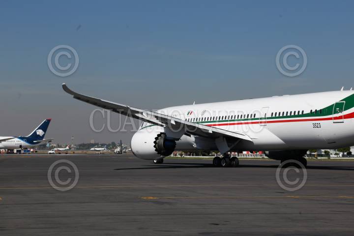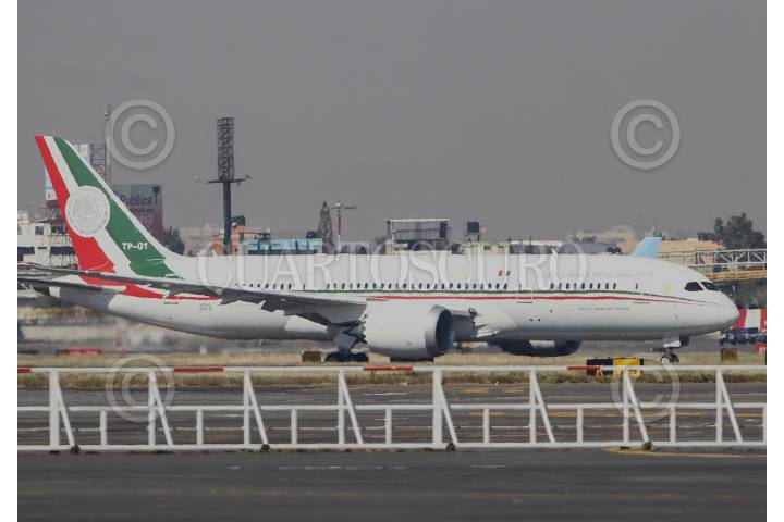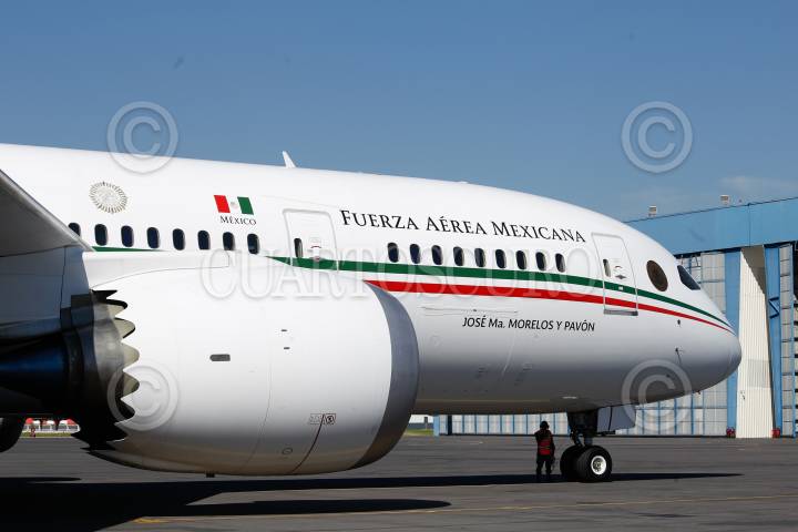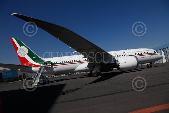 CIUDAD DE MÉXICO, 02DICIEMBRE2018.- El avión presidencial viajará este lunes a las 11 horas con destino a San Bernardino, California donde se resguardará en lo que encuentra comprador, afirmó el director de Banobras, Jorge Mendoza. El Boeing 787-8 “José María Morelos y Pavón” cuenta con una capacidad máxima de 80 pasajeros, fue utilizado por dos años 6 meses para realizar 214 operaciones durante la administración de Enrique Peña Nieto, y recorrió una distancia superior a los 600 mil kilómetros. FOTO: ILSE HUESCA /CUARTOSCURO.COM